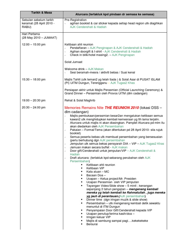 Senaraipendekkan dan pilih acara yang betul-betul bersesuaian. Contoh buku aturcara untuk majlis sekolah. Contoh Memo Majlis Berbuka Puasa.